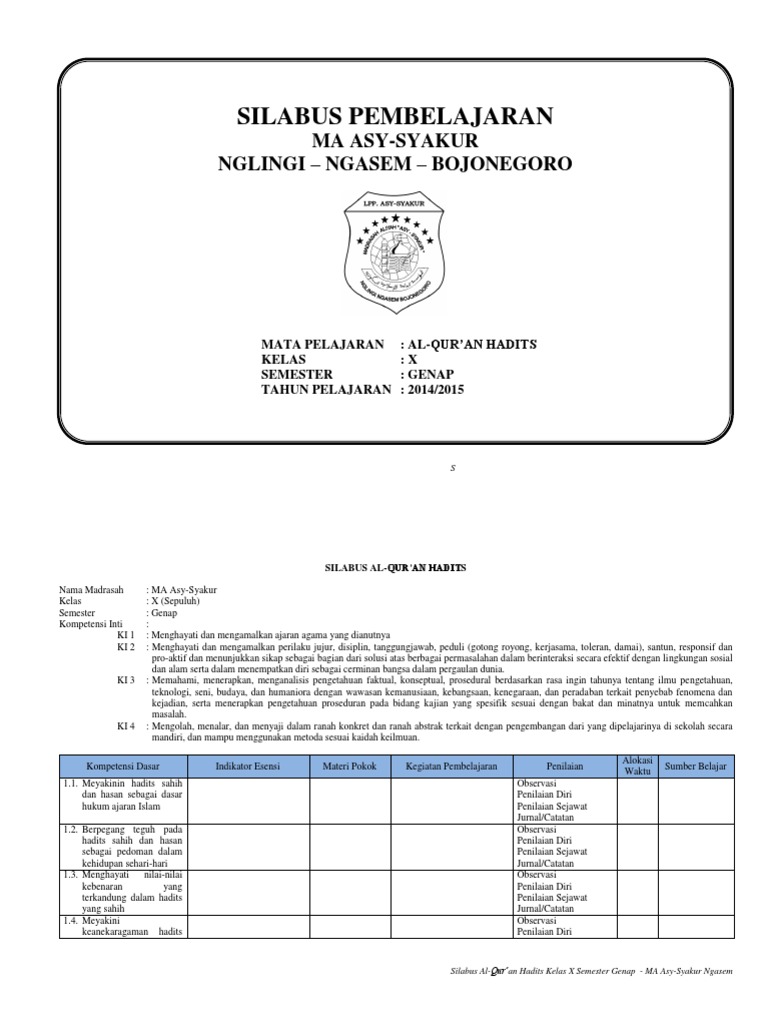 for "Silabus Al-Quran Hadist Kelas 7 Semester Genap : Silabus Al-Quran Hadist Kelas 7 Semester Genap : Download Silabus Quran Hadits Mts Kurikulum ..."